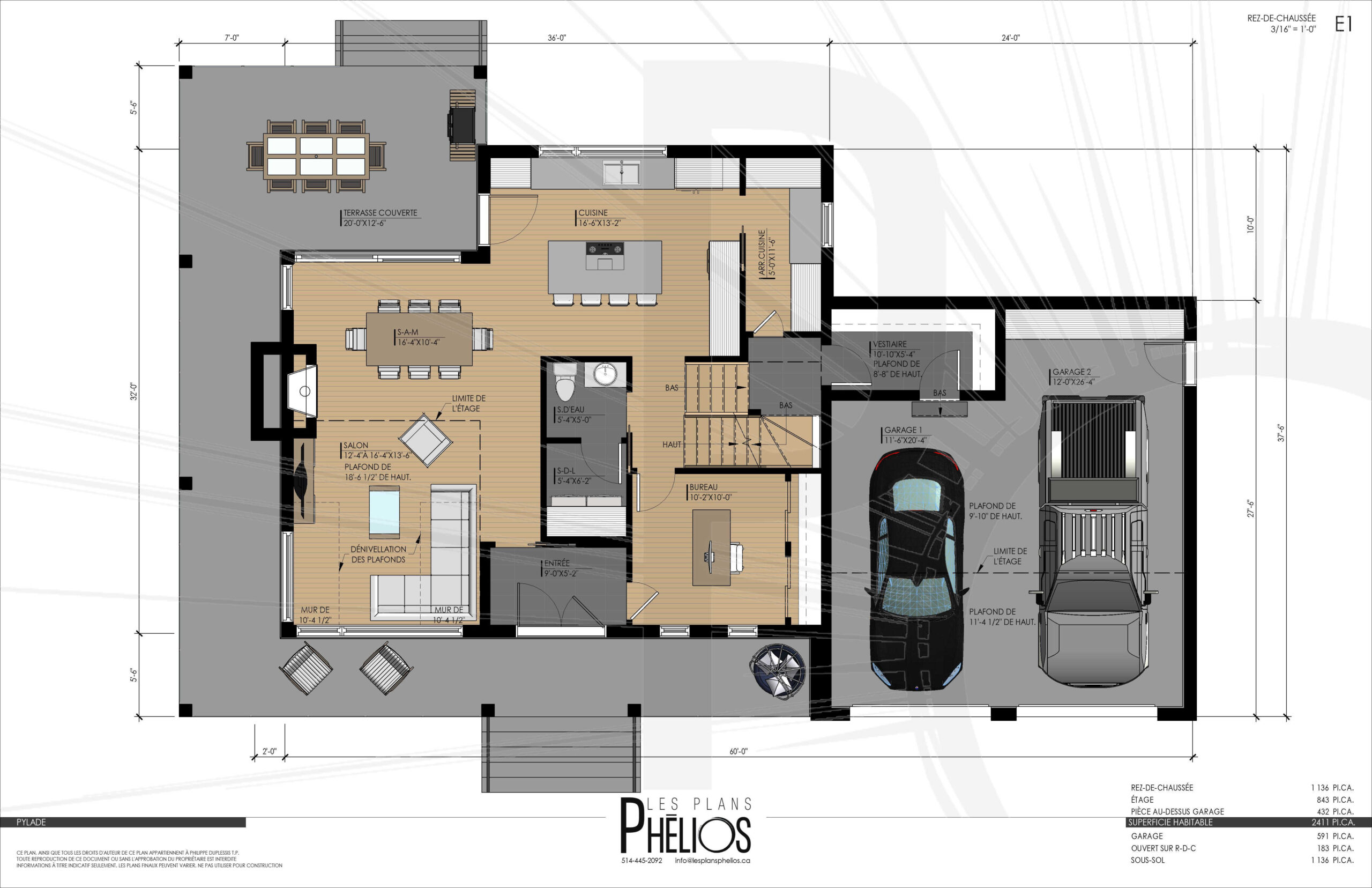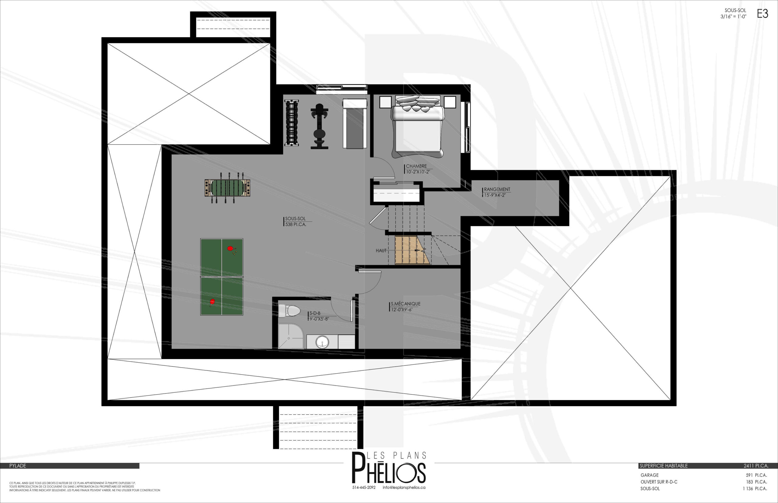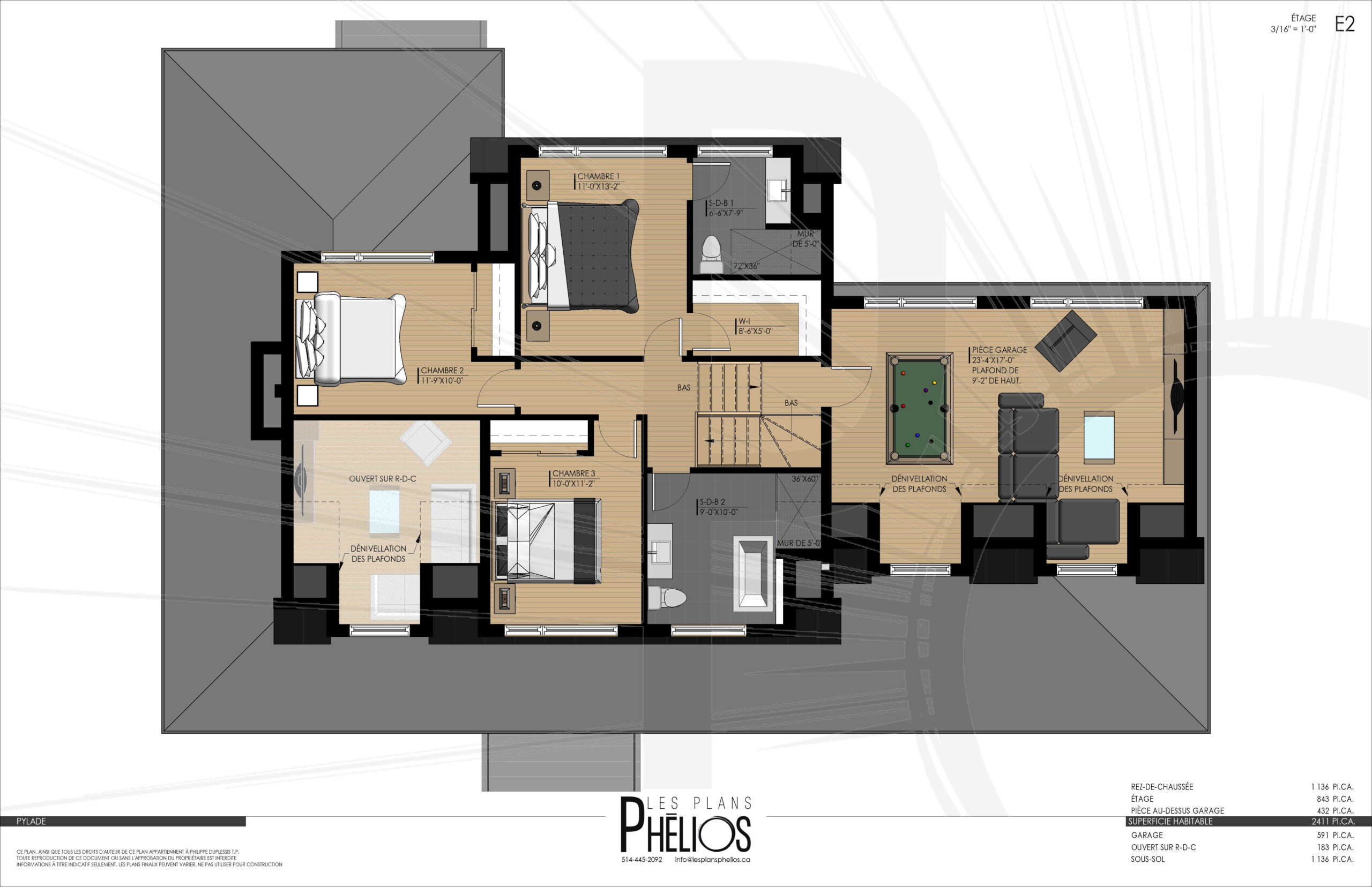 Pièce au-dessus du garage en option: 432 pi2